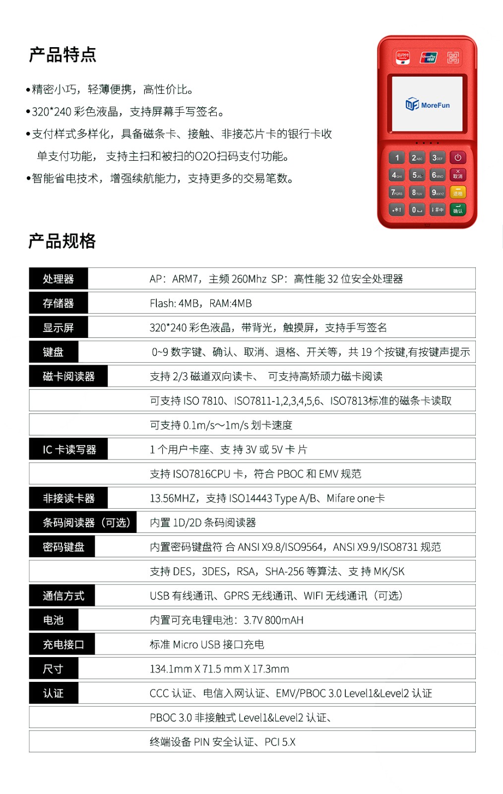 首页>>四川产品中心>>四川手持无线POS 四川电银支付-4G+扫码枪 高配版 * 性能优越:32位高性能ARM11安全CPU;整机通过业内更先进的PCI PED4.X 安全认证及国内受理终端PIN输入设备安全评估检测认证,多项措施保障金融交易的安全;* 时尚外观:外形小巧携带方便,高抗跌落性能、宽工作温度、防水防尘设计、外壳坚固耐刮、户外携带式作业更加耐久可靠。* 通讯备份:支持2G-3G扩展;* 超长续航:3.7V-800毫安稳定续航能力,智能电池管理保证持续工作18小时,待机72小时。 标准配置 返 回